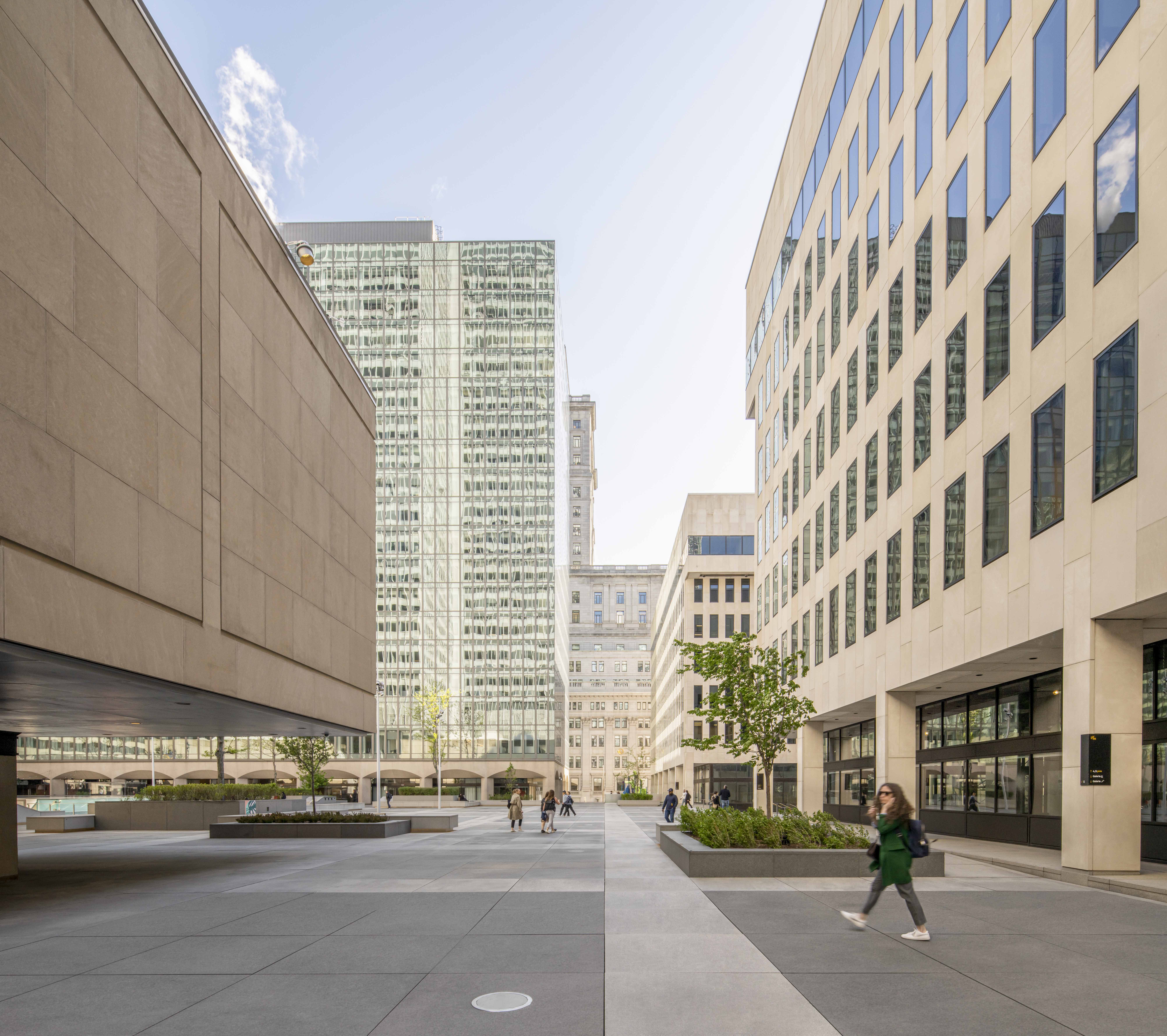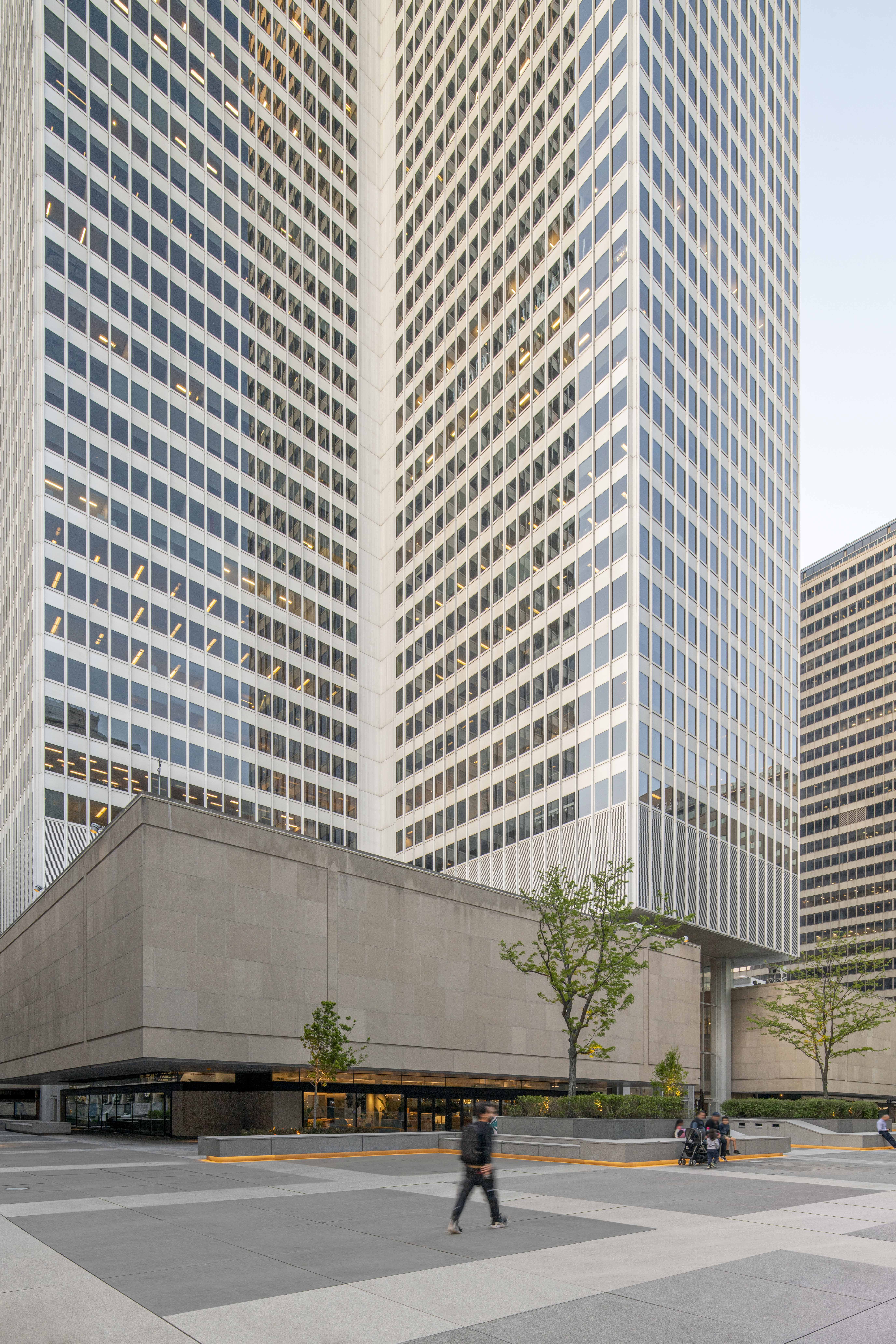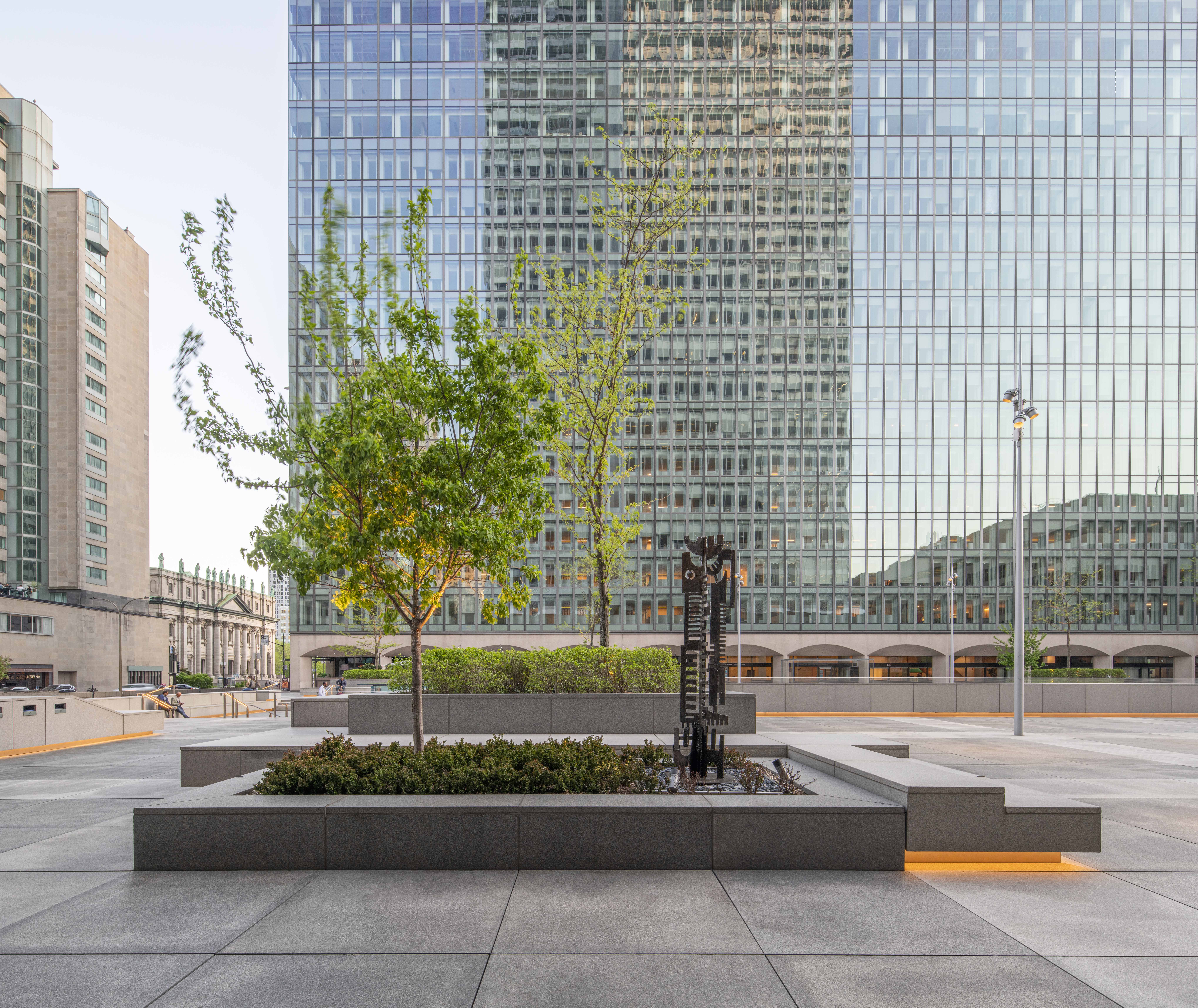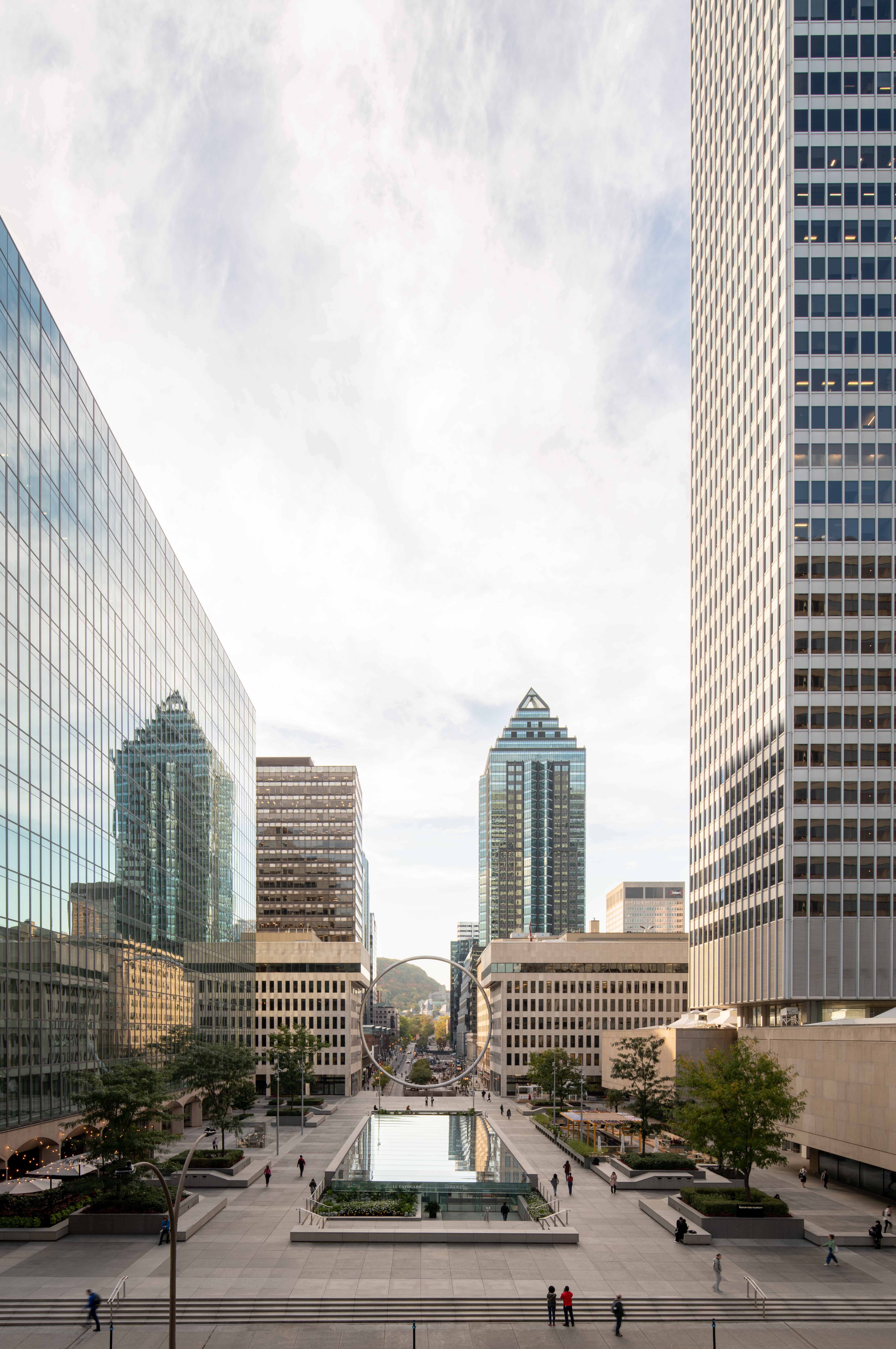 The return to a uniform materiality permeates the entire architectural landscape, bringing together public areas and buildings. The choice of materials and the arrangement of forms reaffirm the idea of a universal layout, a foundational concept of Place Ville Marie. Evident even in the Esplanade’s tiling, this grid links the towers visually and underscores the importance of the character of this project to the heart of the city. The public square now offers a direct visual and physical connection to Mount Royal through the McGill College axis. The renewed Esplanade PVM is a refreshed version of what it once was, now easier to navigate, socialize in, and enjoy.