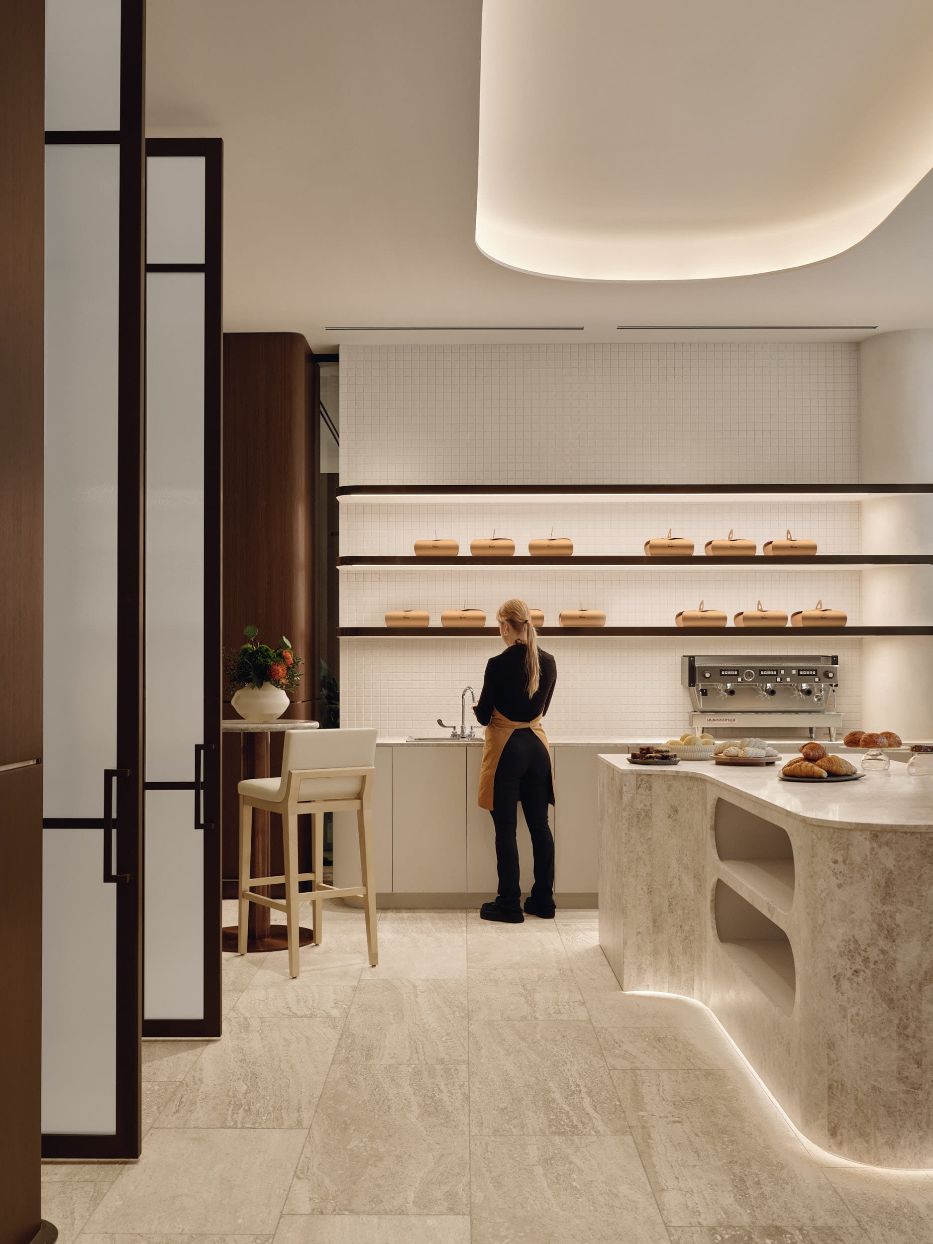 Omniprésentes, les lignes ondulantes des intérieurs convergent pour créer des formes organiques invitant le regard à voguer à travers l’espace, tandis que l’intégration de plantes tropicales fait écho à une forêt luxuriante.