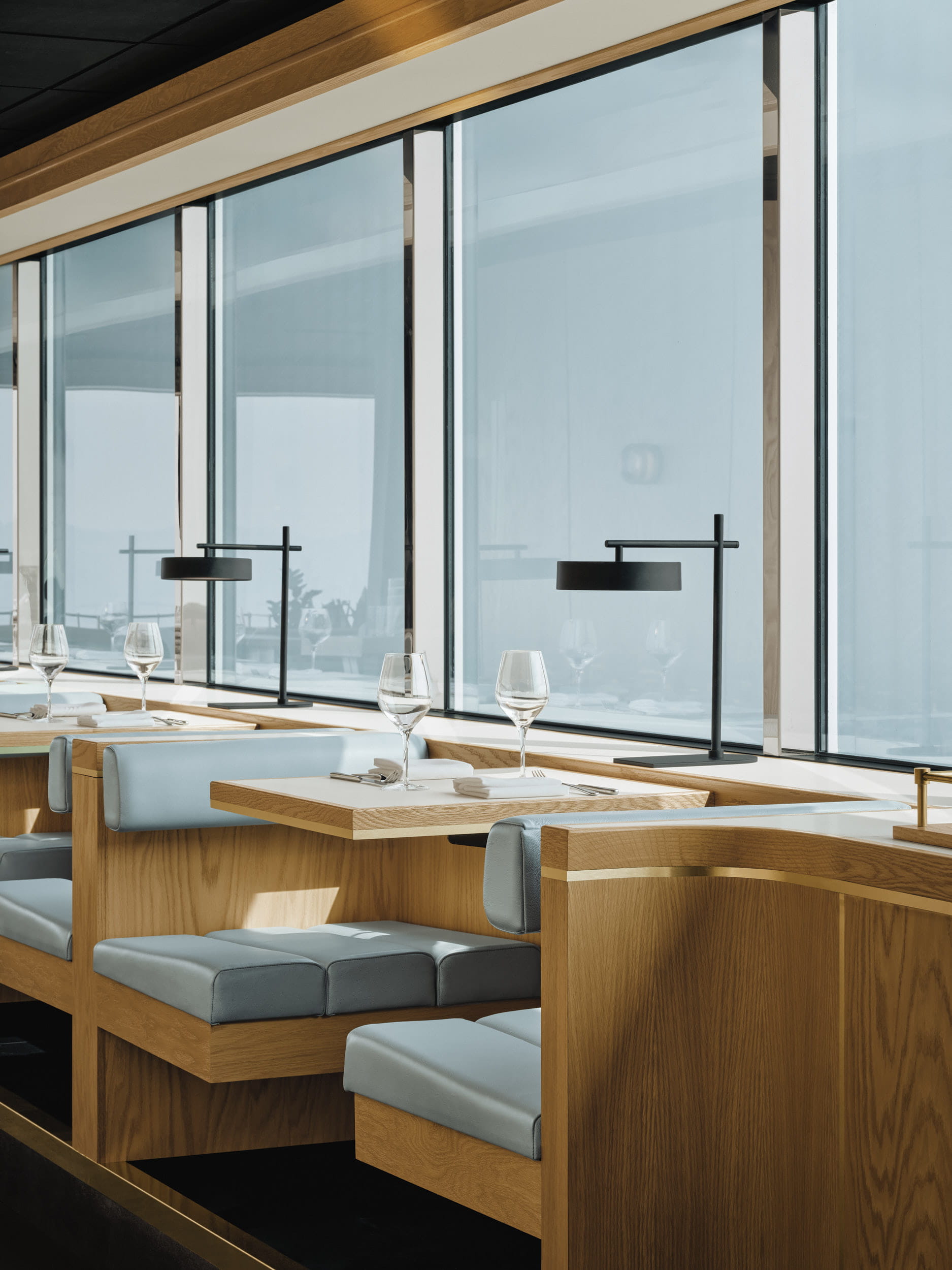 Le 45e étage de PVM, abritant initialement une salle des machines, a été repensé en une expérience speakeasy. Les meneaux effet miroir, les banquettes recouvertes de cuir couleur céleste et les lampes de table font référence à l'héritage moderniste du bâtiment, tandis qu'un tapis floral envoûtant, qui accueille la clientèle à son entrée, apporte une vague de fraîcheur avec ses couleurs et ses motifs audacieux. Plutôt qu'une simple fusion du passé et du présent, Hiatus existe en marge des tendances pour offrir à la communauté montréalaise ainsi qu’aux touristes un espace sophistiqué et intemporel.